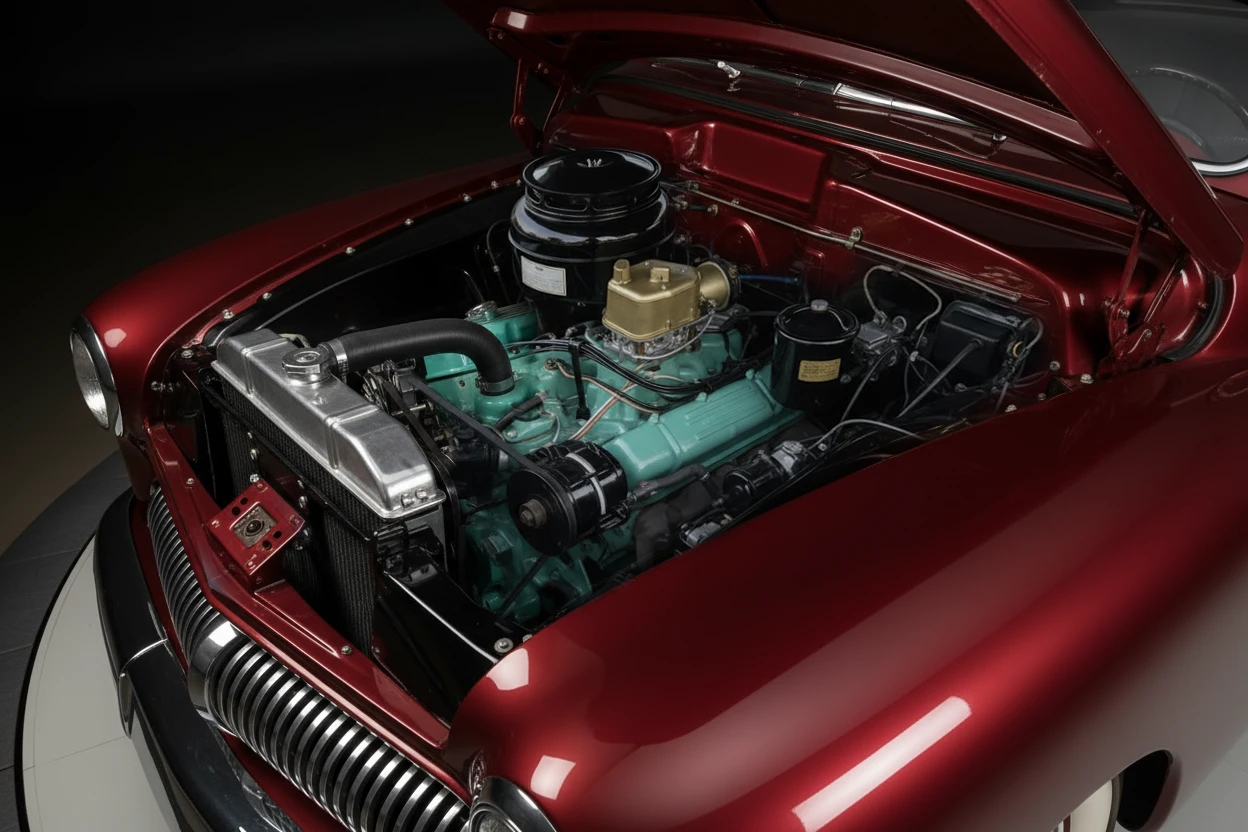 In this realm of sleek lines and refined aesthetics, each modification was not merely for performance but a bold statement of individuality and style. The Radcliff Collection proudly features a stunning maroon “sled” that embodies the essence of the rebellious postwar spirit, which resonated deeply in the hearts of car enthusiasts during that era. In this time, it was not just about speed or horsepower; rather, style and visual impact took center stage, allowing owners to express their unique identities and visions through their vehicles. This Mercury coupe, with its captivating design and rich history, serves as a vivid reminder of an age where custom culture thrived and left an indelible mark on the automotive landscape.